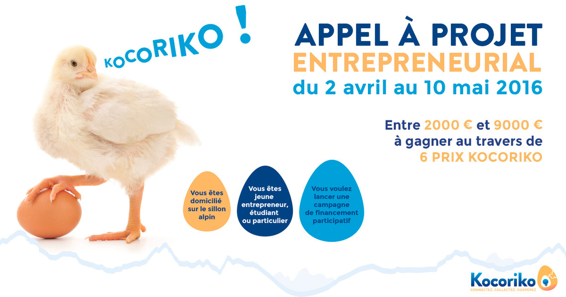 Venez participer à l'appel à projet sur Kocoriko (réservé aux projets du sillon alpin), les 4 lauréats gagneront des prix allant de 2000€ jusqu'à peut-être 9000€.
