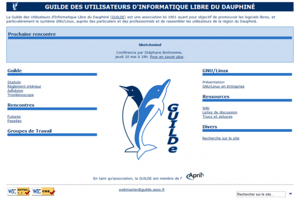 La Guilde est une association loi 1901 ayant pour objectif de promouvoir les logiciels libres, et particulièrement le système GNU/Linux, auprès des particuliers et des professionnels et de rassembler les utilisateurs de la région du Dauphiné. Elle rassemble une trentaine de membres. Son site propose des trucs et astuce, une liste de discussion, un rappel sur les prochaines rencontres de la Guilde et pointe vers un Wiki.