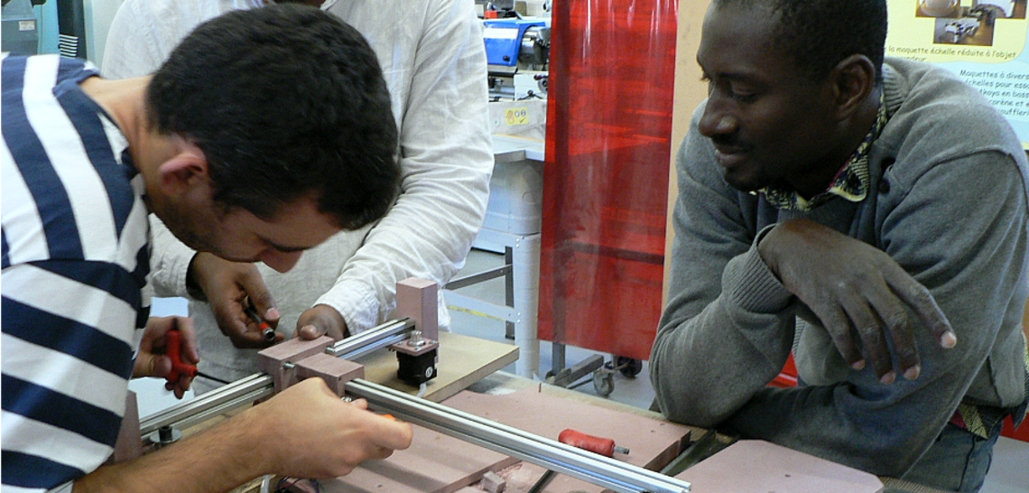 Le sous-groupe en charge de la fabrication investit la plateforme GI-NOVA de l’AIP PRIMECA Dauphiné Savoie. Dans ce FabLab, se trouvent des équipements de pointe de prototypage mécanique (imprimante 3D, etc), électronique (cartes Arduino, etc)... En temps normal il est investi par des chercheurs, des industriels et des étudiants qui y fabriquent et testent les prototypes des solutions dessinées, le tout très rapidement. Ce samedi 17 novembre, il est réservé pour les « 24 heures de l’innovation ». Programmation, câblage, soudage… mais aussi découpe, collage, assemblage, tests occupent les amis de Khalil de longues heures durant.