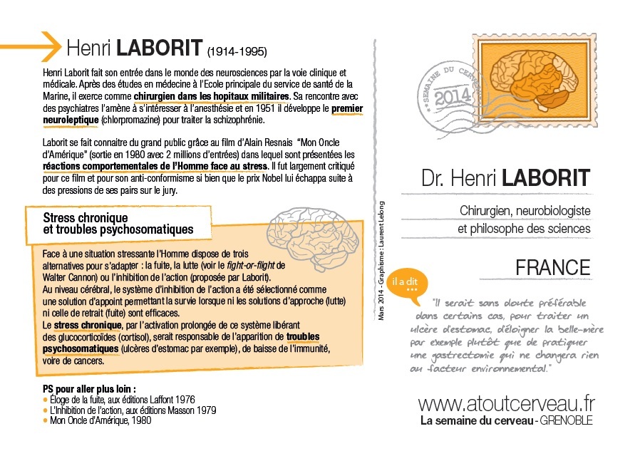 Chirurgien et neurobiologique, Henri Laborit étudie les réactions de l'homme face au stress et se fait connaître grâce au film Mon oncle d'Amérique d'Alain Resnais.