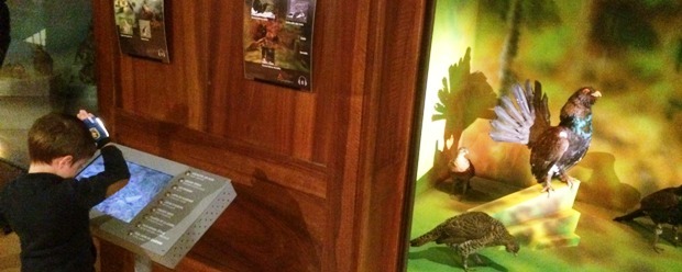 Ces formalités faites, on traverse la grande salle du premier étage, en papillonnant entre les vitrines. La coccinelle s’arrête devant les animaux qui lui plaisent : les lièvres ont sa faveur cette fois, et aussi l’ours brun sur deux pattes. Elle passe environ trois heures devant les « ordinateurs » qui présentent des petits films sur les animaux des vitrines, bien que les écrans ne soient pas tactiles, à la grande déception de ma fille de deux ans…Les grands flânent devant le beau travail photographique lié à l’exposition temporaire Troisième vie, et en profitent pour faire ENFIN la différence entre un chamois, un bouquetin et un mouflon. Ils sont devant nous, grandeur nature.