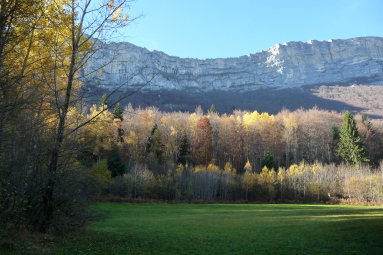 A 965 m d’altitude, la tourbière du Peuil est l’un des rares sites humides du Vercors dont la nature calcaire ne favorise pas la formation de ce type de paysage. On s’imagine en effet plus aux abords d’un marais que d’un massif montagneux. La tourbière est le résultat de deux périodes de glaciation. La fonte du premier glacier de l’Isère, il y a 200 000 ans, entraîne la chute d’un pan de la falaise : voici le plateau du Peuil.