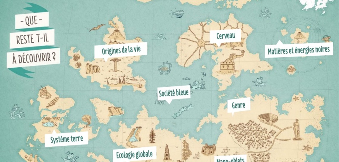 Cette carte est composée de huit continents aux limites encore floues pour les chercheurs : Origines de la vie, Cerveau, Société bleue, Matière & énergie noire, Genre, Système Terre, Ecologie globale et Nano-objets. Cliquez sur l’un d’entre eux pour comprendre, écouter, dialoguer ou encore illustrer ce thème de photos et vidéos. Des articles et des podcasts produits par le CNRS et l’équipe d’Inmédiats viendront enrichir en continu la carte. Et qui dit carte, dit… cartographe ! Une petite fée, @LaFeeCarto accompagnera votre découverte et mettra en valeur vos contributions sur Twitter. N’hésitez pas à discuter avec elle !