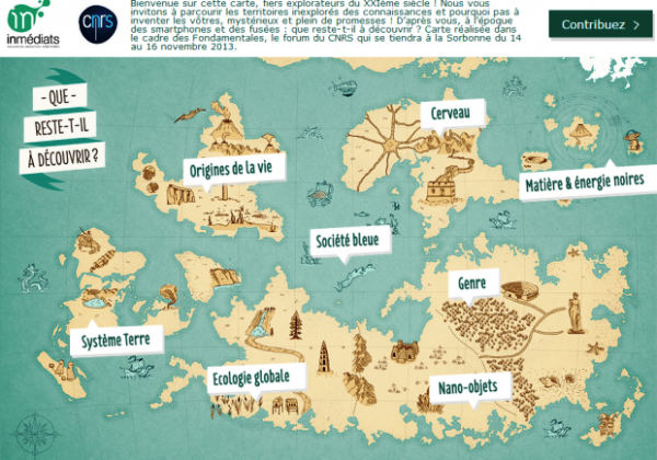 Cette carte a été conçue dans le cadre d’un partenariat national entre Inmédiats et le CNRS à l’occasion des Fondamentales, un événement qui se tiendra à la Sorbonne à Paris les 14, 15 et 16 novembre prochains. « "Que reste-t-il à découvrir ?" Cette question, qui motive la curiosité des chercheurs, sera le fil rouge de ces rencontres exceptionnelles en présence des plus grandes personnalités de la recherche française. Deux journées d'échanges dans plusieurs salles en simultané et en continu, ouvertes à tous, seront proposées au public ». A cette occasion, les chercheurs du CNRS débattront et échangeront avec le public notamment autour des thèmes de la carte. Vos contributions et celles des internautes de la France entière (et au-delà) seront relayées par l’équipe d’Inmédiats présente sur place et viendront enrichir le débat.