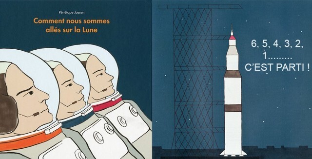 Sous la forme d’un album paru à l’Ecole des Loisirs, Pénélope Jossen nous raconte la véritable histoire de Neil Armstrong, Buzz Aldrin et Michael Collins, les pionniers de l’espace, avec de vraies informations sur la conception d’une fusée et sur les différentes étapes du décollage à l’alunissage, accessibles aux plus jeunes.