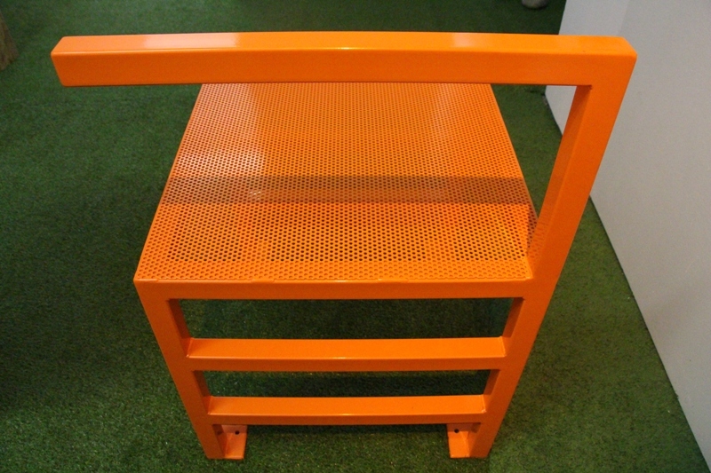 La chaise des montagnes est positionnée dans le parc Borel, sur les hauteurs de la ville et propose d’observer les falaises du Vercors et les mouvements imperceptibles de la montagne. Parole et patience de géologue ! Voici la version du designer « Qui n’a jamais fait cela, s’asseoir sur le dossier d’un banc public pour en détourner l’usage ? Mon rôle ici est d’être à l’écoute de ces pratiques initiées par les usagers, les jeunes, les moins jeunes, les groupes, les couples. Plateforme à partager, la chaise Montagne est née de cette nécessité à voir plus haut, plus loin. Perchoir à 360°, ce siège propose une infinité de combinaisons d’assises pour pouvoir, seul ou à plusieurs, observer le monde environnant sous toutes ses coutures ».