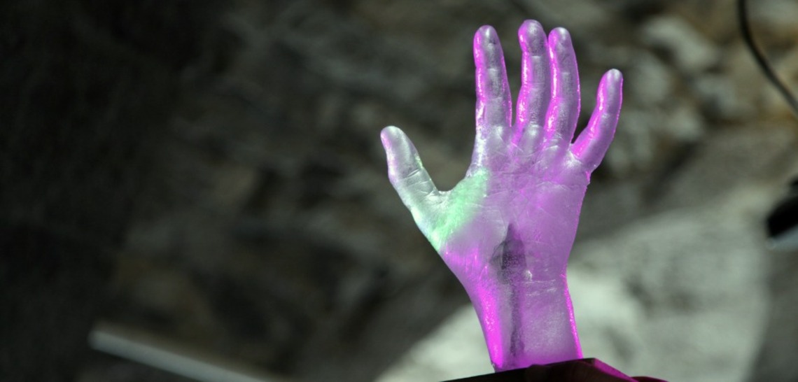 Il est maintenant plus proche que jamais de cet outil, sous la forme d’un gant interactif qu’il développe avec sa compagnie et toute une équipe de chercheurs, développeurs et designers, en lien avec l’Atelier Arts-Sciences (2). Ce gant permettra de manière transparente et par des gestuelles naturelles de contrôler l’ensemble du dispositif son et de la lumière. Il renfermera l’ensemble des fonctionnalités de contrôle du looper, de la spatialisation, ainsi que des effets sonores et visuels.