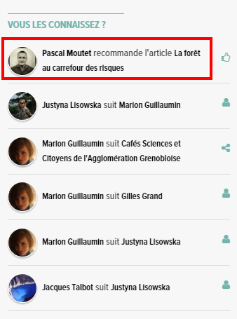 C’est le même principe pour les autres types de contenus de la plate-forme : vous pouvez également recommander des dossiers, des annonces, des projets ou encore des communautés.