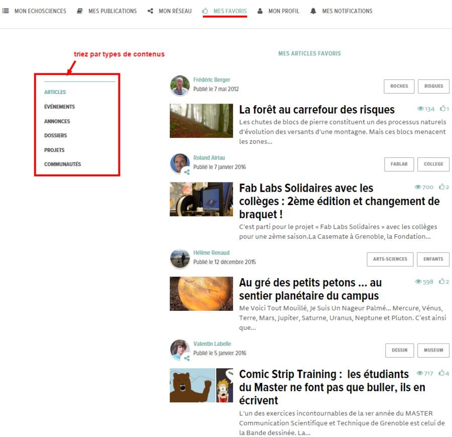 Il est à présent possible d’ajouter des contenus d’Echosciences en favoris, ce qui s'avère plutôt pratique si l’on souhaite sélectionner des informations parmi la multitude de contributions postées sur le site (pas loin de mille à ce jour).