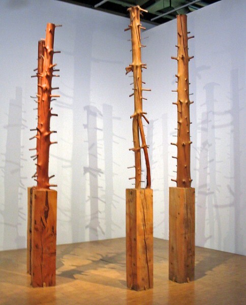 C’est devant la révélation des formes de l’arbre jeune toujours présentes au centre de ces poutres et dégagées par sa taille, que j’ai découvert Giuseppe Penone. Ce devait être au Musée de Grenoble. Pour ma part, pas de réflexion ici. Seulement une émotion. Emergeant de cette poutre inerte, cette vision immédiate de la présence d’un arbre singulier par ses formes développées au cours d’une vie passée. Bien sûr. Evident. Justement.