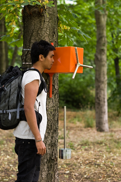 Isaac&Graham est un montage d’apparence très simple (c’est fait pour) : une manivelle pour remonter facilement de un mètre une masse de 20kg. Libérée, la masse descend alors doucement en quelques minutes. Pendant la descente, elle alimente un téléphone portable (version Isaac&Graham) ou une LED (version Isaac&Thomas) à travers une dynamo. Un système autonome de production d’énergie électrique que l’on peut installer même loin de tout.
