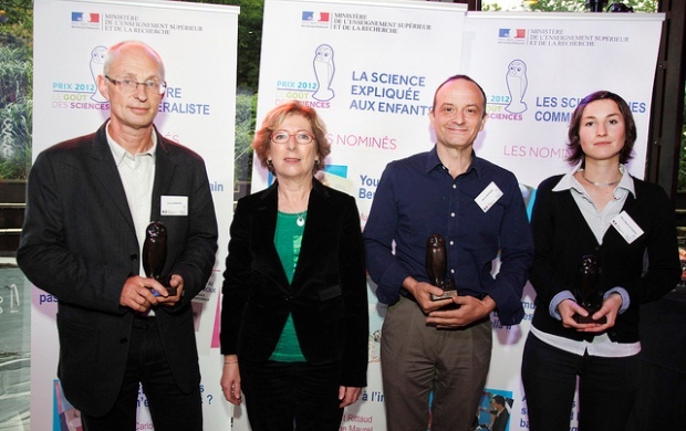 Jean Lilensten (à gauche) lors de la cérémonie de remise du Prix "Le goût des sciences" en octobre 2012