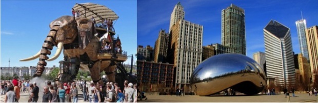 Les Machines de l’île de Nantes et le « Cloud Gate » à Chicago (« The Bean ») (Flickr, cc)