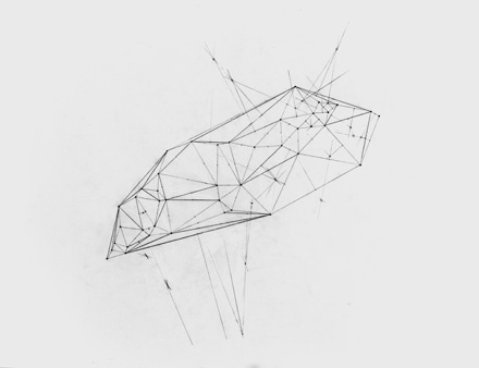 Phase préparatoire d’un diagramme de Voronoï au crayon sur calque. Extrait de cet article Esthétique des statistiques : « En mai et juin 2011, après nos nombreuses discussions sur les processus d’évaluation quantitative des services publics et la mise en concurrence permanente des agents, j’ai mis en place un atelier de dessin avec quatre policiers du commissariat du XIVe arrondissement de Paris »