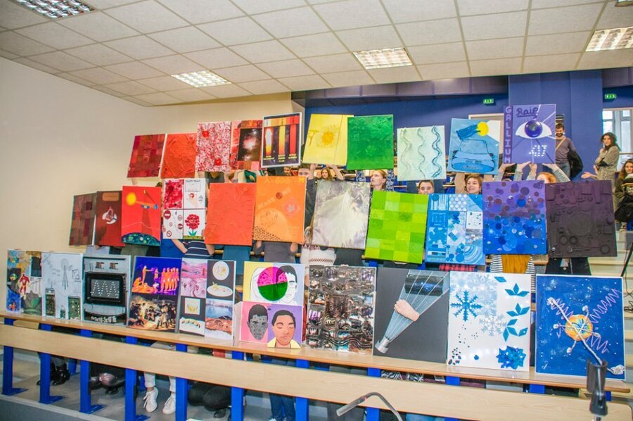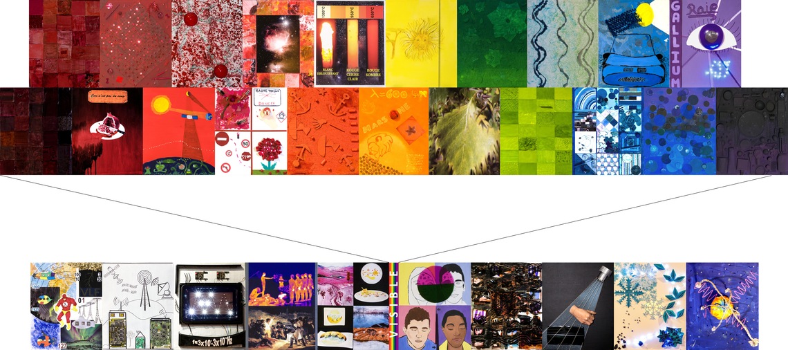 Chaque classe s’est vu confier un domaine spectral particulier, dans le visible pour les collégiens et dans l’invisible pour les lycéens. Plus de 1000 élèves ont été mobilisés à cette occasion ! Ils avaient pour objectif de créer une œuvre sur toile illustrant leur domaine spectral appuyée par un dossier scientifique. Ils ont disposé d’une liberté totale en ce qui concerne la création artistique. Un référent scientifique (chercheur ou doctorant) qui avait pour rôle de les accompagner dans leur réalisation a été attribué à chaque classe. Un des aspects fondamentaux du projet est la pluridisciplinarité, ce dernier impliquant des enseignants dans des matières très variées : arts plastiques, physique-chimie, SVT, français, anglais, philosophie et même la cuisine pour le lycée hôtelier !