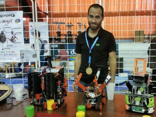 Nous l’interpellons alors pour lui poser quelques questions. Chimiste de formation, Yves utilise internet pour peaufiner son travail auquel il a consacré près de 6 mois. La robotique est pour lui un moyen de « toucher à tout », son projet utilisant le travail du bois, la programmation, l’électrique, etc. Un vrai homme à tout faire qui aime partager sa passion.