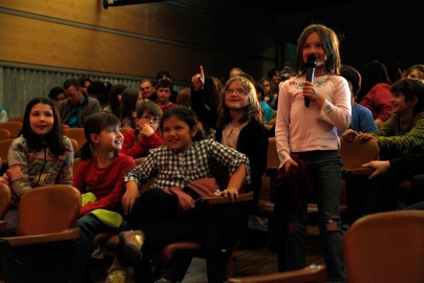 Après la pièce de théâtre, les enfants réagissent et questionnent.