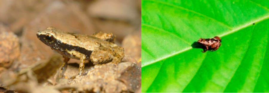 La grenouille Gardiner - Renaud Boistel/CNRS (gauche), Office de tourisme des Seychelles (droite)