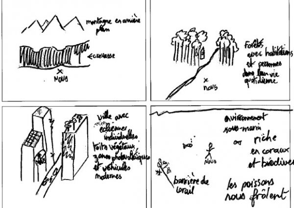 Terminé ! Toutes les équipes ont concocté d’étonnants voyages dans le temps et l’espace à l’appel de contrées tantôt ravagées, tantôt sublimées. Vous trouverez ci-dessous leurs propositions de scénarii, qui seront peut-être transformés en film. Que verra-t-on en enfilant le masque ? On se trouvera complètement immergés dans un univers 3D à 360°. Simple contemplateur ou acteur, le spectateur peut devenir partie prenante du scénario.
