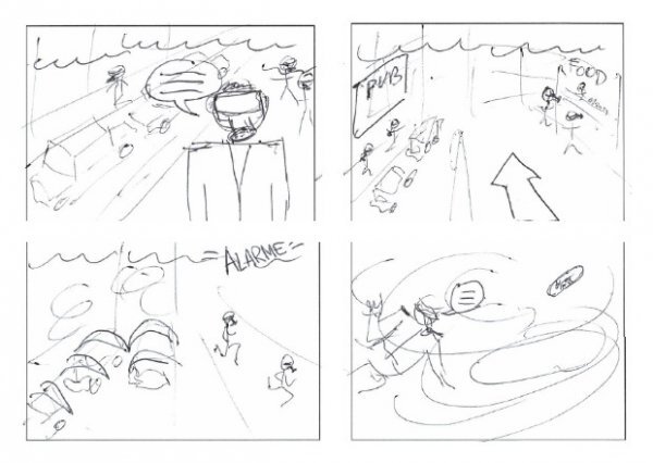 >>> Nous voilà engagés dans une mission à la solde d’une agence d’espionnage. La liste des phénomènes irréversibles est déjà longue. Serait-il trop tard ? Justement, un groupement politique commande une étude des futurs possibles modélisés par des experts. Sorte de paroxysme de la technologie de renseignement, le masque permet au voyageur-espion d’aller, invisible, écouter aux portes de 4 mondes probables les récits d’habitants dont la vie a été bouleversée. Ingénieur en énergie renouvelable dans sa tour végétalisée, réfugié climatique marginalisé en bordure d’une ville, médecin spécialisé dans les nouvelles maladies, voyageur en terre désertée … En parcourant une ville bétonnée de gris sous air conditionné, une communauté troglodyte, une ville en symbiose avec la nature et un village sur l’eau, on se demande si les choix seront équitables.