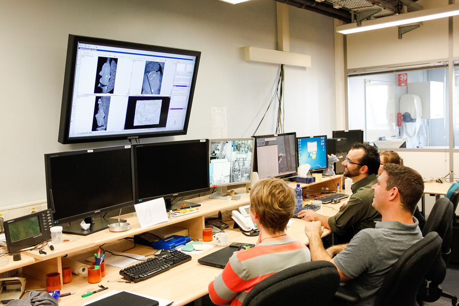 C’est là que l’ESRF entre en jeu et notamment la ligne de lumière ID17 et ses faisceaux de rayons X de haute énergie et d’une brillance intense. « L’ESRF permet de faire, sur un échantillon large, de la micro-tomographie à contraste de phase à longue distance de propagation, à haute énergie » précise Vincent Fernandez. Une technique de tomographie dite « scan CT » qui a « révolutionné la paléontologie », indique Kathleen Dollman, en permettant de déterrer virtuellement les fossiles.