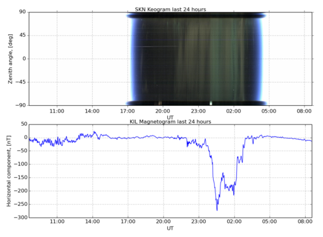 L'expérience EISCAT s’arrête à 2h du matin (1h UT, il y a franchement moyen de bien se planter entre les heures locales et le temps universel). On continue à prendre des données à tout hasard mais peu d'espoir que cela donne des choses intéressantes.