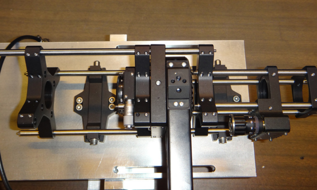 Il faut étalonner les angles de SPP. Heureusement, les fabricants d'ordinateurs portables ont mis des polariseurs sur leur écrans. La polarisation est à 45°. Ca fait une calibration honnête. On met en place l'instrument dans une salle noire, on vérifie au niveau que tout est bien plat et c'est parti.