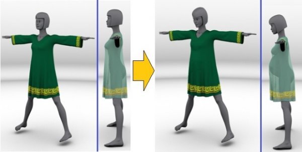 Que ce soit au cinéma ou dans les jeux vidéos, les foules sont souvent uniformes car les personnes doivent avoir la même morphologie pour faciliter leur habillage. Avec un transfert automatique les morphologies possibles deviennent illimitées, au delà de la morphologie humaine, pour une durée de travail minimale. Les applications dans l’industrie du textile sont évidentes. Pouvoir étendre une gamme de vêtements à différentes morphologies (enfant, adultes, femmes enceintes) deviendrait tâche facile.