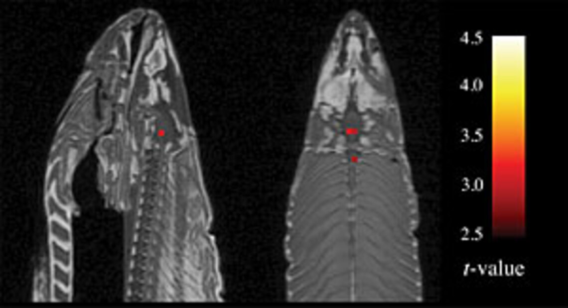 Le problème étant que, soumis à un traitement statistique, certains des voxels (unité de volume sur laquelle la mesure est réalisée) démontraient des variations statistiquement significatives. En somme, la tâche de lecture des émotions humaines activait le cerveau du saumon mort ! Les auteurs prirent un malin plaisir à montrer l'image du cerveau de notre sympathique salmonidé un peu trépassé, s'activant devant le spectacle des embarras, joies et déceptions humaines (le point rouge sur l'image)
