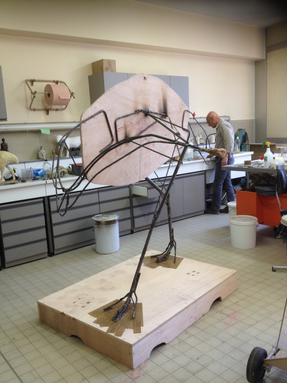Après avoir fait des mesures anatomiques détaillées sur les squelettes conservés au Muséum de Paris, Daniel réalise la structure de la pièce taille réelle. Les plumes étant inaccessibles aujourd'hui, c'est une forme peinte modelée que Daniel réalisera. Un long travail de plusieurs jours... Vivement l'exposition #Monstrueux en 2016 pour pouvoir le découvrir !