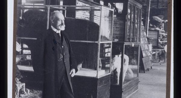 Laurent Mulot prépare la "chambre d'écho" qui s'installera dans l'Orangerie du Muséum en octobre... Il filme ici une collection humide du...
