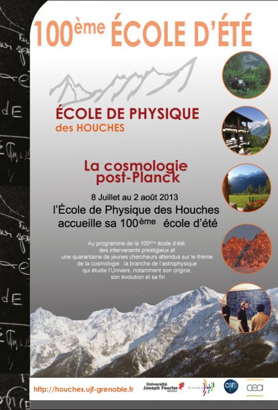 Durant quatre semaines, ils ont l’occasion d’approfondir leurs connaissances, mais aussi de s’initier à de nouvelles thématiques de pointe, touchant à la physique mais aussi à d’autres domaines comme la biologie, la chimie ou les sciences de la Terre. L’Ecole de Physique des Houches fête ce mois-ci sa 100ème édition, intitulée « La cosmologie post-Planck ». Celle-ci accueillera une quarantaine de participants qui se retrouveront autour de la cosmologie, la branche de l’astrophysique qui étudie l’Univers, notamment son origine, son évolution et sa fin.