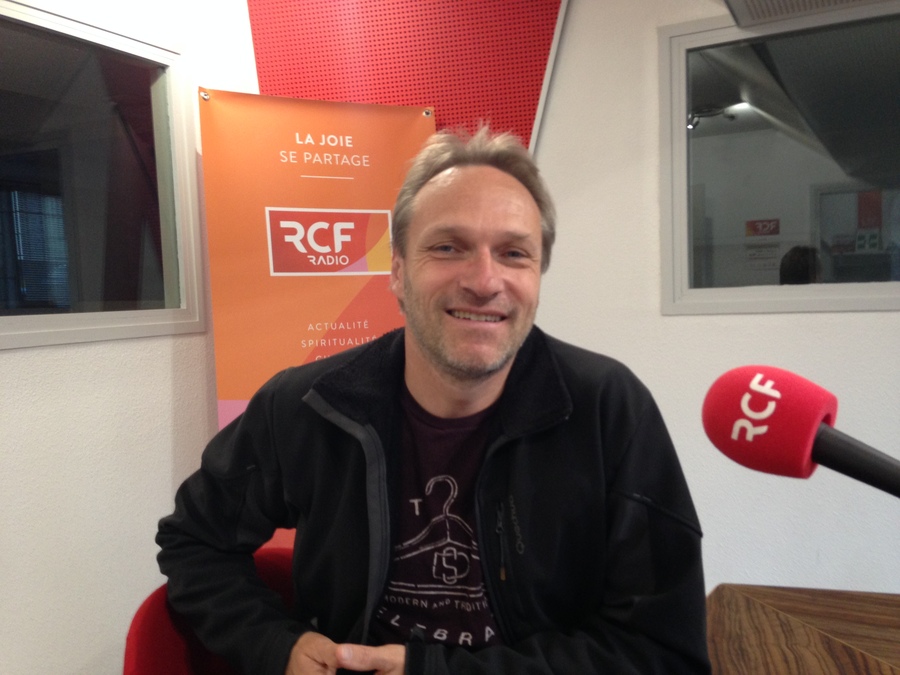 Mathieu Barthélémy lors de l'interview, au studio du RCF Isère
