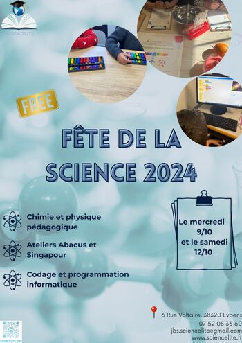 La structure propose des ateliers de chimie et physique pédagogique, permettant de développer la notion d’hypothèse et d’observation chimique, ainsi que des ateliers à visée mathématique, autour de différentes méthodes : des ateliers liés au calcul mental avec la méthode Abacus (utilisation du boulier chinois) et la méthode de Singapour (manipulation d’objets concrets tels que des cubes).