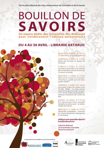 Le pôle éditorial des sites universitaires de Grenoble et de la Savoie vous invite à la librairie Arthaud pour (re)découvrir la richesse et la diversité des catalogues de ses partenaires : les ELLUG, le centre d'expertise Grenoble Sciences, les PUG et l'Université Savoie Mont Blanc, à travers :