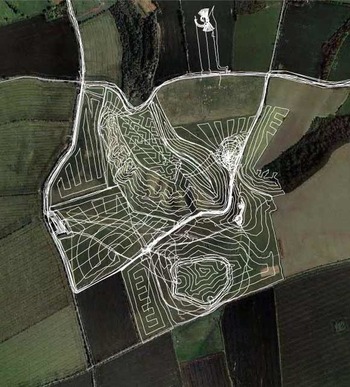 Equipé d'un GPS glissé au fond de sa poche, il arpente les territoires urbains et ruraux en laissant en mémoire la trace de son cheminement à pied, en vélo ou en suivant consciencieusement sa tondeuse à gazon. L'échelle de son pas devient alors la pleine unité de mesure, le mètre étalon de référence territorial. Il obtient ainsi des graphismes complexes, slalomant à vive allure entre les courbes de niveau, déposant un mot fragile et délicat entre deux rues, ou caviardant avec humour une place publique.