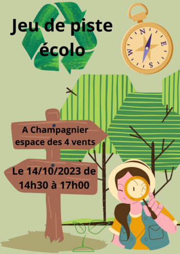 - Venez participer à un jeu de pistes avec différentes étapes proposant chacune des énigmes avec des questions sur l'environnement (l'eau, l'air, les déchets, la biodiversité, les gestes du quotidien etc...).