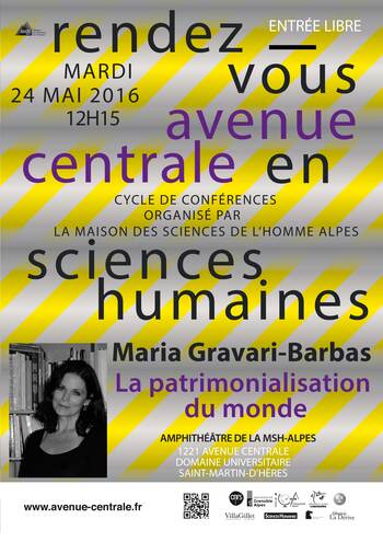 Dans le cadre du cycle Avenue centrale. Rendez-vous en sciences humaines, une conférence de Maria GRAVARI-BARBAS qui portera sur les processus de patrimonialisation et leurs impacts sur la société.