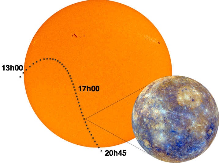 La silhouette de la planète Mercure va se déplacer devant celui du Soleil entre 13h12 et le coucher du soleil.
