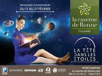 Du 17 au 27 février, notre univers dévoile ses secrets à la caserne de Bonne ! Qui n’a jamais rêvé de se rapprocher des étoiles ? Pendant 10 jours, explorez l’immensité du cosmos à travers une animation exceptionnelle ! Apprenez tout sur les planètes, notre système solaire, découvrez de véritables météorites… Notre équipe d’astronomes vous attend chaque jour, de 10h30 à 18h.