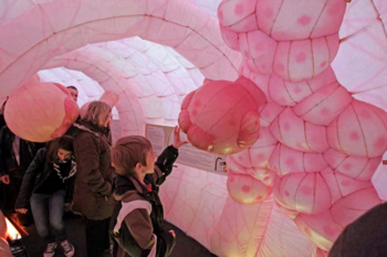 Le Côlon tour® : plus de soixante villes mobilisées autour d'un Côlon gonflable géant, une structure gonflable d'une longueur de 12 mètres représentant l'intérieur du côlon.
