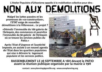 Une réunion publique sur la rénovation urbaine est organisée par la ville de Grenoble le 28 septembre 2016 à 19h (sur inscription au Patio). Nous appelons à nous mobiliser fortement pour cette réunion publique (un rassemblement sera peut être organisé à 18h...)