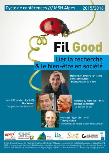 Fil Good est un cycle de 4 conférences annuelles qui souhaite renforcer le lien entre les recherches sur les déterminants du bien-être et les applications pratiques et transmettre les résultats de ces recherches à un public large dans le but de favoriser l'amélioration de la santé mentale du plus grand nombre.