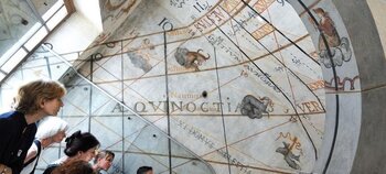 Créée en 1673 par le père jésuite Jean Bonfa, l’horloge solaire est un cadran à réflexion, témoignage exceptionnel de la science des jésuites au XVIIe siècle. Elle fournit de nombreuses et étonnantes informations, en grande partie liées à l’astrologie.