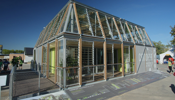 Le pavillon Canopéa, installé en face de Minatec est un lieu d'expérimentation pour l'habitat et aussi le pavillon d'information sur le projet Presqu'île.