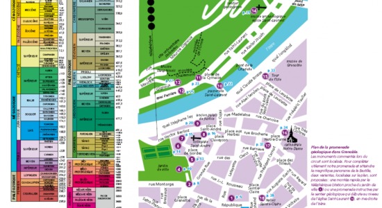 Grenoble se trouve au pied des massifs du Vercors, de la Chartreuse et de Belledonne et au cœur d'une plaine alluviale à la jonction de l'Isère et du Drac. De ce fait, les hommes ont très tôt utilisé les matériaux géologiques régionaux, d'excellente qualité, pour les monuments, les maisons, les digues, les ponts. Le bâti grenoblois illustre cette histoire et témoigne de la diversité des roches utilisée. Le guide "Promenade géologique à Grenoble" (éditions Biotope) vous propose une promenade, entre anecdotes et détails architecturaux jusqu'alors passés inaperçus. Celle-ci dure entre 2h et 2h30 (sans les variantes), débute à l’Office du tourisme et se termine au bout de 19 stations, au lycée Stendhal. Les auteurs (Jacques Bouffette, Jérôme Nomade, Emmanuel Robert) partagent une autre manière de voir la ville à travers une approche simple et plaisante de la géologie toute proche de nous.