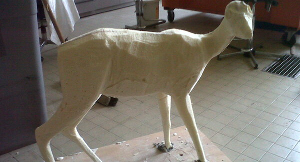 Un chevreuil blanc albinos, une rareté naturelle, est en cours de taxidermie au muséum.Voici le mannequin réalisé ce jour par Daniel, taxidermiste....